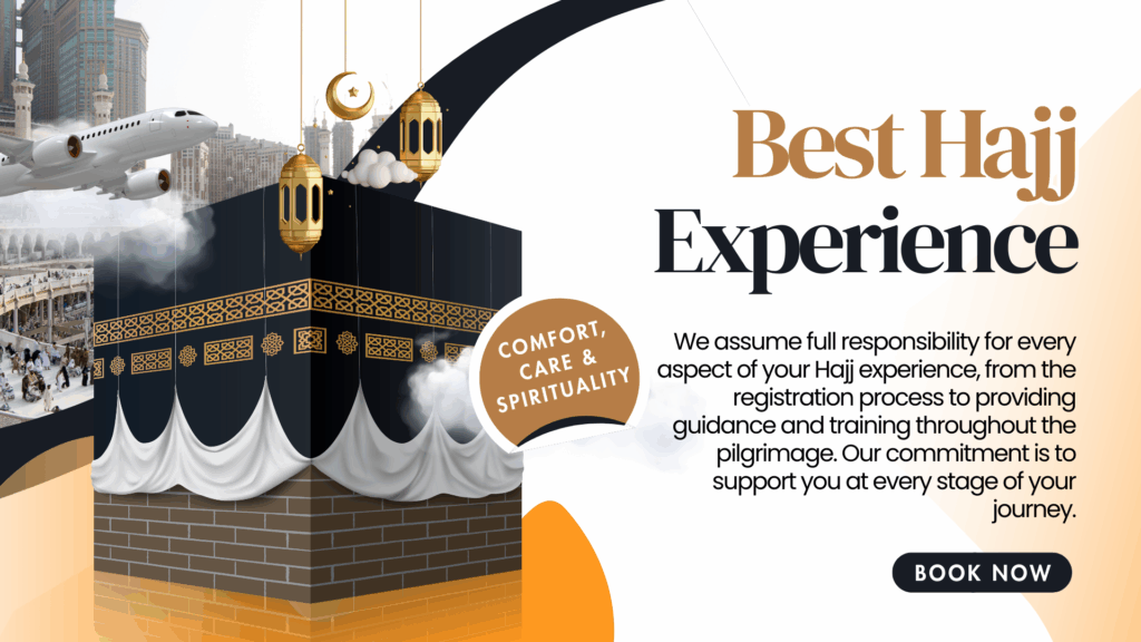 Every element of your pilgrimage is carefully managed— including quality lodging, local transport, and committed assistance, while flight bookings are handled separately through our experienced professionals. Our skilled team of Hajj coordinators and religious scholars will accompany you throughout the entire process, guaranteeing a trouble-free and rewarding experience in the blessed cities of Makkah and Madinah.